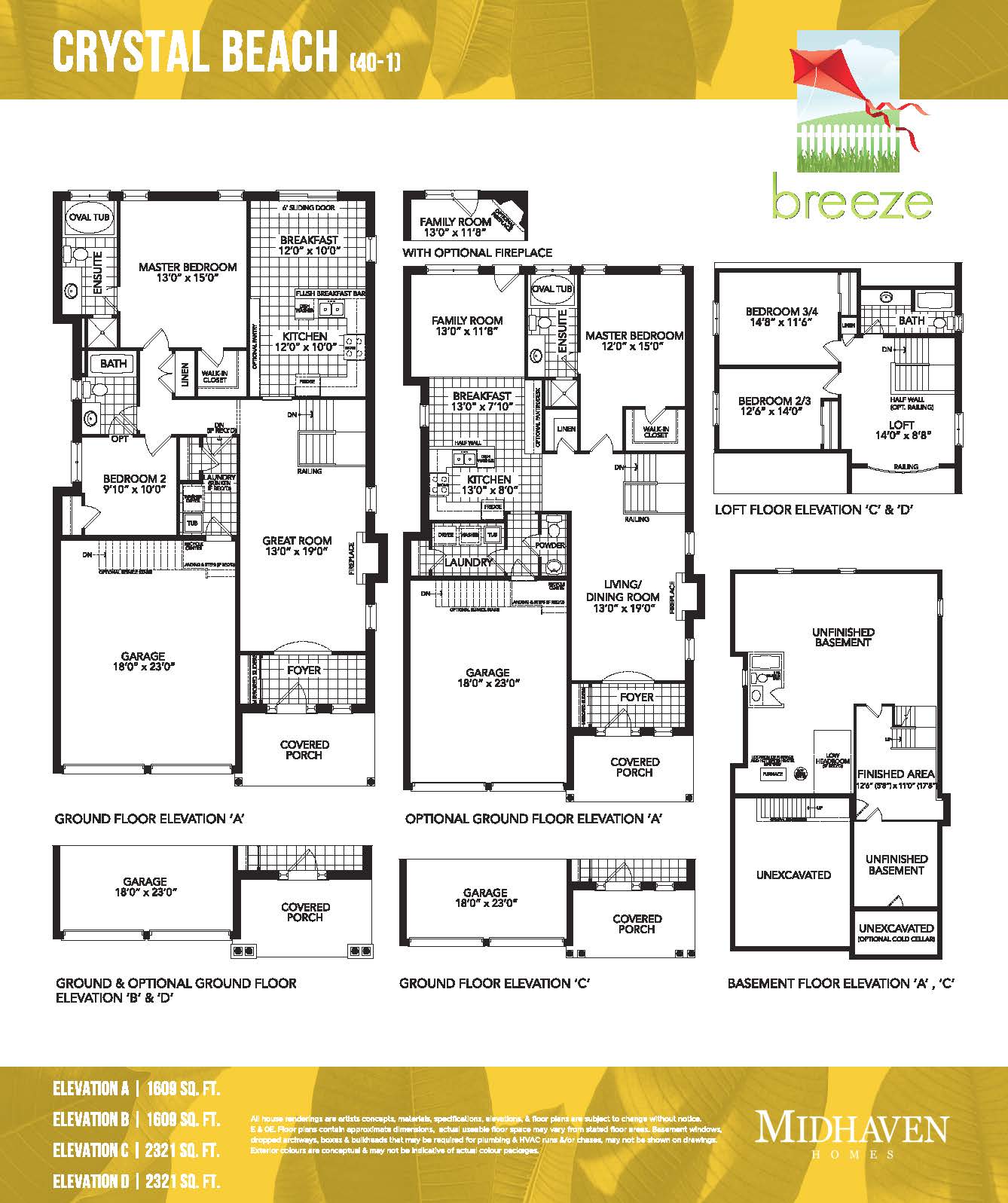 All house renderings are artist’s concepts, materials, specifications, elevations & floor plans are subject to change without notice. E & OE Floor plans contain approximate dimensions, actual useable floor space may vary from stated floor areas. Basement windows, dropped archways, boxes & bulkheads that may be required for plumbing & HVAC runs &/or chases, may not be shown on drawings. Exterior colours are conceptual & may not be indicative of actual colour packages.